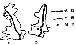 (5)乙图中B地所处的地形区是_________,为把B地丰富的矿产资源外运而修建的铁路是_______铁路。