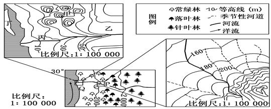 4、单选题  读“某地区自然景观分布示意图”,以及“P、Q两区域的等高线图”,回答下列各题。