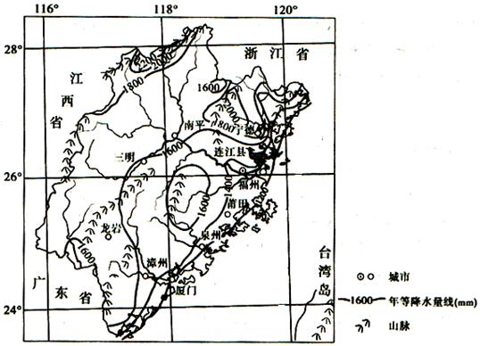 材料一:图为福建省年等降水量线分布图。