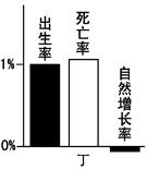 4、单选题 读甲、乙、丙、丁四地的人口统计图,回答题。