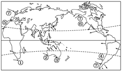 5、综合题 读全球离岸风和迎岸风分布示意图,回答下列问题。(12分)