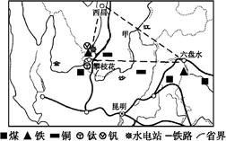 材料二:图为“攀西—六盘水”资源富集区示意图。