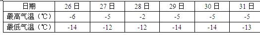 表1:2009年12月26日至31日渤海沿岸某城市气温统计数据表