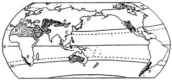 (3)B地是世界上荒漠分布最广的自然原因是:?