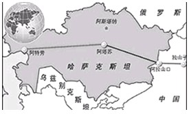 1、单选题 下图为“中哈石油管道分布示意图”,据图完成1~2题。