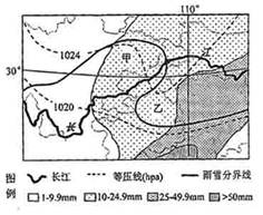 小题1:导致图中雨雪分界线在甲、乙处发生弯曲的主要因素是?