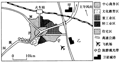 (3)拟在甲、乙两处规划建设高新技术工业城和石油化工城两座卫星城市。石油化工城应建在____处,