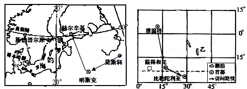 我国政协主席贾庆林3月23日至4月1日访问了非洲喀麦隆、纳米比亚、南非三国,国家副主席习近平3月20日至3月30日访问了欧洲俄罗斯、白俄罗斯、芬兰、瑞典四国,读图回答23~24题。