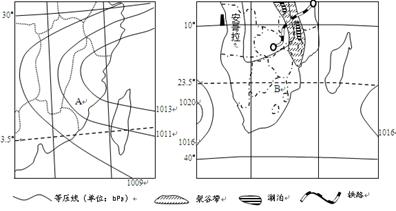 本题解析:(1)东非大裂谷的成因是板块张裂运动,雅鲁藏布江峡谷是板块挤压抬升经过流水的侵蚀导致。(2)从气压带判断季节可知,海洋 上是高压,是北半球夏季的特征。(3)铁路建设的制约因素从地形、地质、技术条件等方面分析。