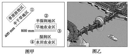 小题2:地处我国南北地理分界线上的淮安市于2008年8月正式开工建设南北地理分界线标志园,图乙为标志园内分界线标志物模型。该标志物应位于图甲中的(? )