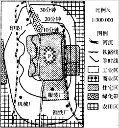 5、单选题  ? 读浙江某城市功能分区和等时线示意图,图中等时线是指汽车从城市P点向外行驶所用时间相等点的连线。回答1—2题。