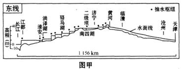 (2)从图甲和图乙看,中线与东线调水最大的区别是什么?除此之外,与东线相比,中线方案的有利因素还有哪些? (4分)