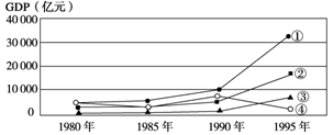 1、单选题 今后我国三个地带的发展,应当在国家统一规划指导下,按照因地制宜、合理分工、各展所长、优势互补、共同发展的原则,充分发挥本地带的优势。下图表示我国东部、中部和西部三个地带GDP(亿元)的增长,据此完成以下问题。