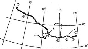 (2)图中①~⑦分别代表我国某重要城市,请说出其中至少两个城市的名字。(1分)