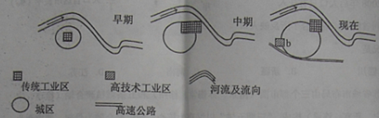 3、单选题 下图为我国南方某城市工业布局变化图,近年来,在b处形成了以高技术产业为主的新工业区。据此回答下列各题。