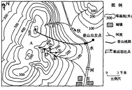 (2)根据等高线的数值变化,可以确定河流在a-b段河流的流向为a到b,结合指向标,判断为自东向西;利用线段比例尺,可以直接量出a-b约为35千米左右。