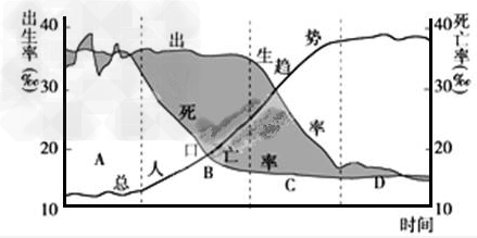 (4)我国人口增长模式属于________型,即位于图中阶段________(填字母),这一阶段人口增长的特点是__________________________________,并请说明我国发生这种转变的原因:______________________________________________。