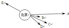 2、单选题 图为俄美朝韩日五国首都与北京相对方位及距离示意图。