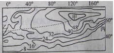 4、单选题 如图“亚欧大陆及其附近区域气温年较差分布示意图(单位: