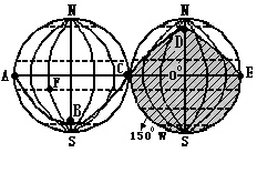 5、单选题 读图(阴影部分为夜半球),回答1—2题。