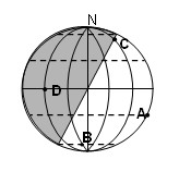 (1)此图中阳光直射的纬线是? ?,地方时为0点的经线是? ?,图中D点的地方时