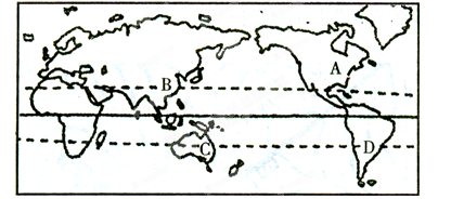 本题解析:本题考查世界主要的农业地域类型。(1)图示A为美国中部地区的小麦带和玉米带,属于商品谷物农业区;B为东亚、东南亚和南亚的沿海地区,为水稻种植业;C位于澳大利亚东南部的墨累-达令盆地,为混合农业区。D位于阿根廷的潘帕斯草原,为世界著名的大牧场放牧业区。(2)A为商品谷物农业,该农业地域类型在我国主要分布于我国的东北和西北地区。(3)B为水稻种植业,一般分布于夏季高温多雨的季风区;我国是世界最大的水稻生产国。影响水稻种植业的主要社会经济条件是市场、劳动力和种植经验。(4)美国的商品谷物农业和澳大利亚的混合农业的种植作物均以小麦为主。