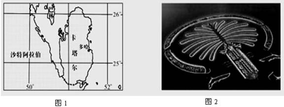 (1)结合图1分析卡塔尔营造人工岛的有利条件有哪些。(9分)?