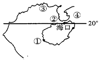 小题1:在图中找出莺歌海盐场的位置是(?)