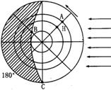 3、单选题 读下图,外圆表示纬线圈,中心为北极点,回答1—2题。