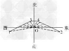 4、单选题 下图是某城市该日一天内的杆影轨迹示意图。O 为立杆处,虚线为杆影,曲线为杆影端点轨迹。该城市可能是下列城市中的