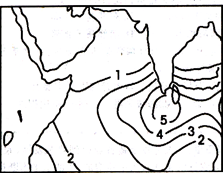2、单选题 读世界某区域某气象受害发生频率等值线图(数字越大表示频率越大),回答问题。