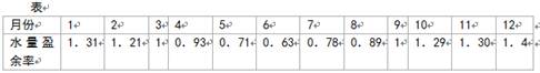 小题2:读表格中数据,从9月到次年3月,水量盈余率大于等于1,水库水量持续增加,3月份后,盈余率小于1,说明水库水量开始减少,所以3月份水量达到最大值,B对。12月份后,盈余率仍大于1,水量继续增加,A错。6月份后水量继续减少,C错。9月份达到最小值,D错。