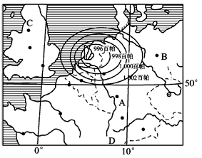 (1)出发前,中国队员从网上查到:图中所示的天气系统正在向正东方向运动,预计72小时将完全从B城过境,请你帮助他们预测B城未来72小时的天气变化过程。