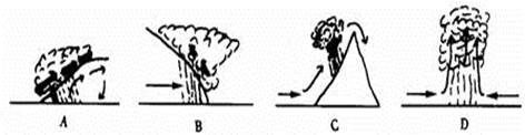 5、单选题 下图表示暖锋天气的示意图是 ( )