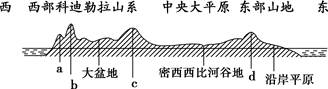 1.图中大陆东、西两侧濒临的大洋分别是2.图中表示阿巴拉契亚山脉的是3.该大陆西岸陡、东岸缓是因为