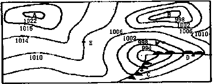 5、单选题  读北半球天气系统图,回答下列问题:(10分)
