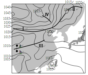 【小题3】下列示意图能正确反映Ⅲ附近a、b两地间的气压分布状况是