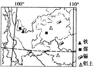 3、单选题 读我国某地区矿产资源分布图,完成1~2题。