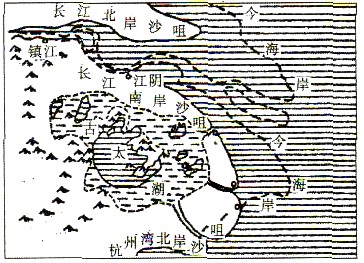 1、单选题  读下图“古代早期长三角地形示意图”,完成下面问题。