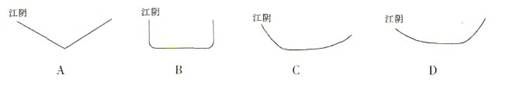 小题1:沿江阴市位置作一古长江横剖面示意图,下图中较吻合的是