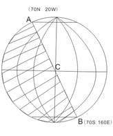 3、单选题 该图中的线段AB是地球上某时刻一条完整的晨线,C点是线段AB的中点。据图回答问题。