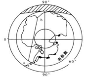 小题2:根据图示:南极大陆出现极昼现象,气温较高,为南极地区的暖季,是考察的最佳季节;南极点极昼时不能看到极光;极地地区的指南针指向不可信;