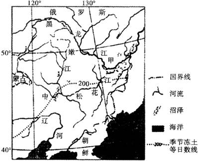 (4)根据东北地区的自然地理特征分析此次洪涝产生的自然原因(6分)
