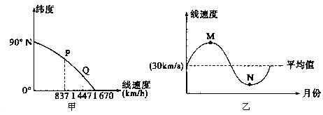 2、单选题 读地球自转线速度随纬度变化图(图甲)和地球公转线速度变化图(图乙)回答下列下列问题。