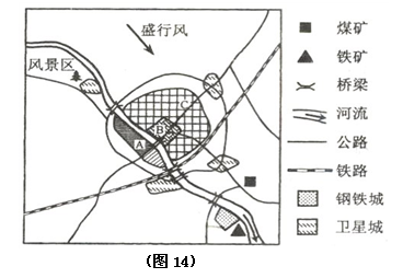 B题:图l4为某区域示意图,读图回答下列问题。
