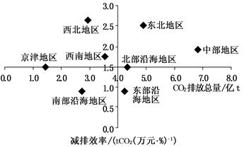 1、单选题 下图是我国区域产业 CO2减排效果比较示意图,完成下列问题。