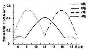 2、单选题 下图表示哈尔滨市某月某日(天气晴朗),在有太阳光线直接照射的时段,不同朝向的墙面所获得的太阳辐射量变化情况。读图完成下列各题。