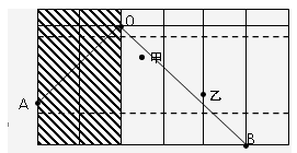 2、综合题 图中的OA、OB为部分晨昏线,阴影所示地区与全球其他地区日期不同,相邻两条经线地方时相差2小时。读图回答问题。(共10分)