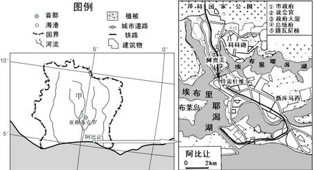 3、单选题  图为某国局部图,阿比让是该国最大的城市和港口。读图回答下列各题。