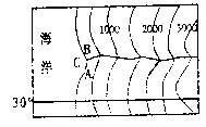 5、单选题  读图分析,此图为30°附近某地等高线图,A、B位于河流的入海口附近。已知A处筑港水域自然条件优于B处,据此回答下面3题: